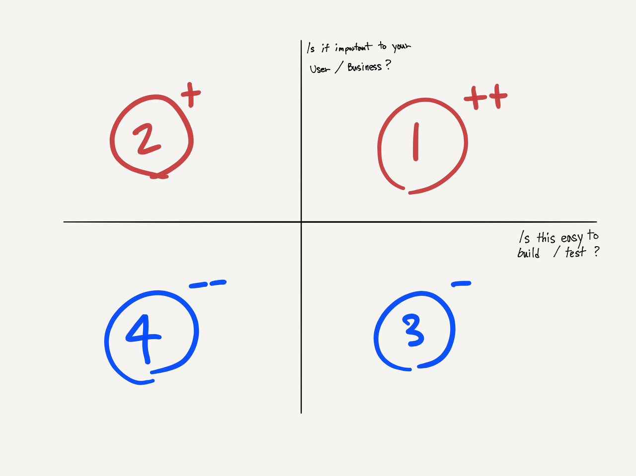 아무리 Persona를 기반으로 작업한다고 하더라도, 많은 Task들이 눈앞에 닥칠 경우, 개발팀은 당연히 많은 작업량 때문에 시작도 하기 전 겁을 먹을 수 있고, 무엇을 어떻게 시작해야 할 지에 당황하고 걱정하기 마련입니다. 그리고 이런 상황에서 리소스(Resource)는 지극히 한정되어 있기 때문에 항상 우선순위를 두고 작업을 진행하는 것은 상당히 중요합니다. 그리고 제가 일하는 팀은 이를 해결하기 위해 몇 가지 기준을 가지고,