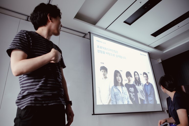 코인원 CPO가 소속 팀과 크루들을 소개하고 있어요.