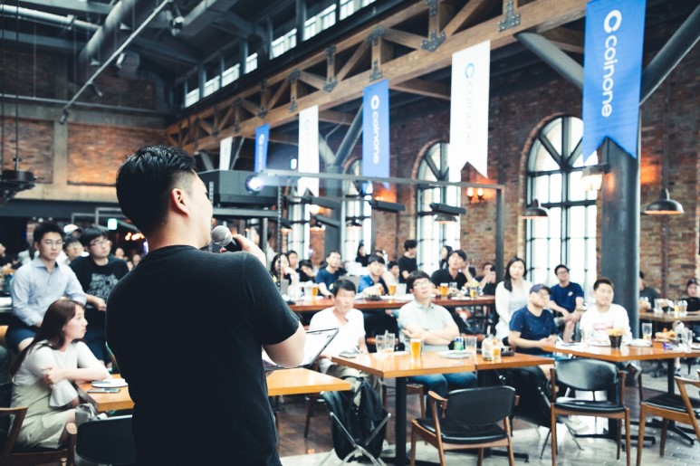 코인원 작업증명(PoW)을 설명중인 명구님(COO)