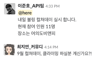 이외에도 정말 다양한 컬쳐데이가 지금도 코인원에서 펼쳐지고 있답니다. 컬쳐데이를 통해서 일뿐만 아니라 문화생활도 100% 열정적으로 즐길 줄 아는 코인원 크루들의 새로운 모습을 발견할 수 있어 좋았는데요. 이는 곧 업무효율성으로 이어진다는 사실도 확인할 수 있었습니다.