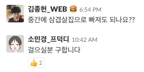 '걸음팟, 삼겹살팟' 등 여러 어록을 남기며 시작하기도 전에 엄살을 부리기도 했지만, 단 한 명의 낙오자없이 모든 크루가 10km 코스를 완주했습니다. (모두모두 수고하셨어요!)