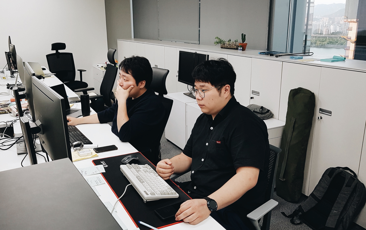 CGEX는 비즈니스, 개발, 디자인, PM이 모두 One Team으로 업무를 진행하고 있어요. 개발쪽으로 오시면 하나의 PC에 두 개의 모니터와 키보드를 발견할 수 있습니다. CGEX는 최대한 Pair 코딩으로 일하면서 코드리뷰에 드는 시간을 줄이고 있습니다. 개발에 좀 더 시간을 쏟고, 1주일 평균 2회 정도 서비스를 배포하고 개선합니다.