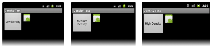 예시2) 같은 사이즈의 애플리케이션에 Low, Medium, High-density 화면에 DP 단위를 지원했을 때
