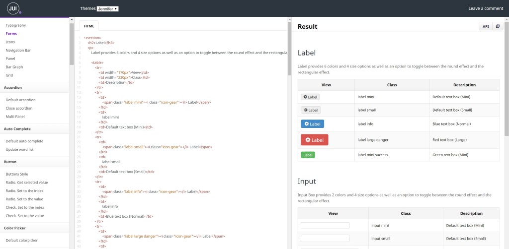 디자인과 개발의 일관성을 위해 자주 사용하는 요소는 모두 컴포넌트화시켰다. 이에 한 요소가 JUI이고 이로 인해 새로운 화면이 추가되더라도 디자인의 일관성이 유지되었고, 화면상의 문제가 발생할 경우에도 컴포넌트 단위로 버그를 수정하여 반영함으로써 유지보수도 쉬워졌다.