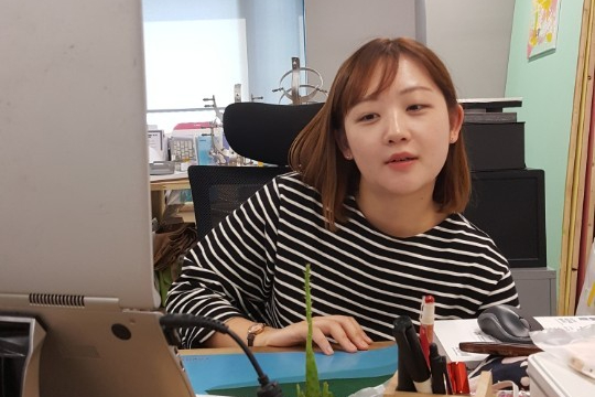 *성수동 헤이그라운드에 위치한 위누 사무실의 채윤 님. '마음이 이끈다면 도전하세요!'