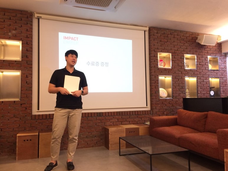 *임팩트 커리어 Y 2기의 수료식에서 소감을 발표하는 결 님