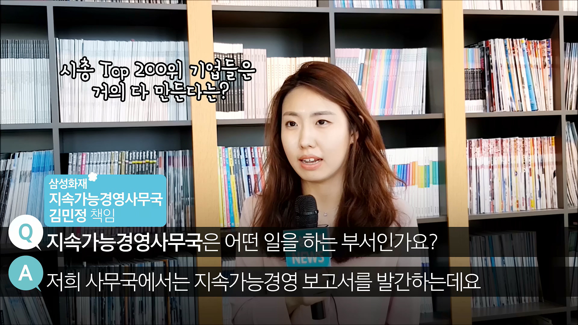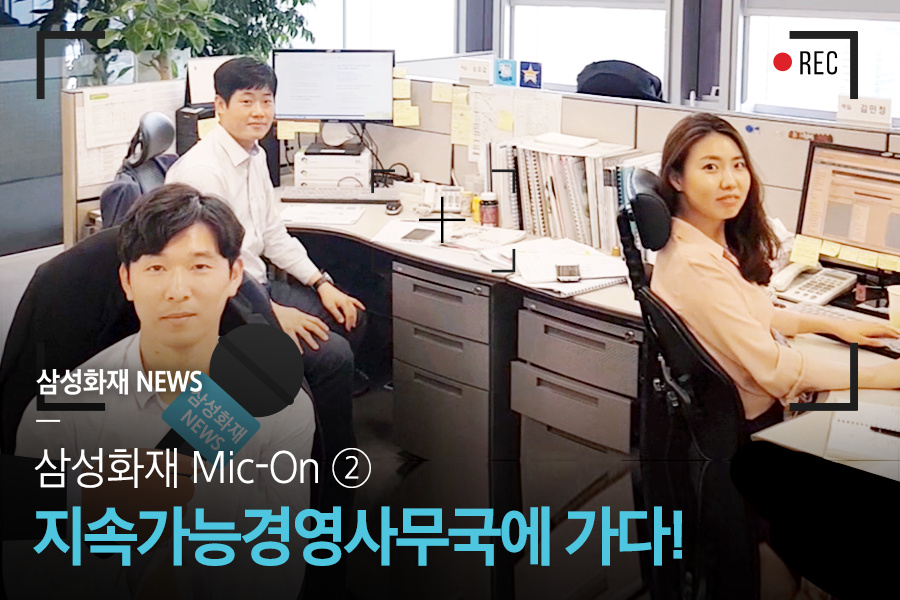 삼성화재도 주주, 고객, 임직원, 파트너, 지역사회 등 이해관계자 모두를 고려한 지속가능경영 활동을 체계적으로 전개하고 공유하고 있다고 하여 ‘삼성화재 Mic-On’이 ‘지속가능경영사무국’에 직접 찾아가보았습니다. :)