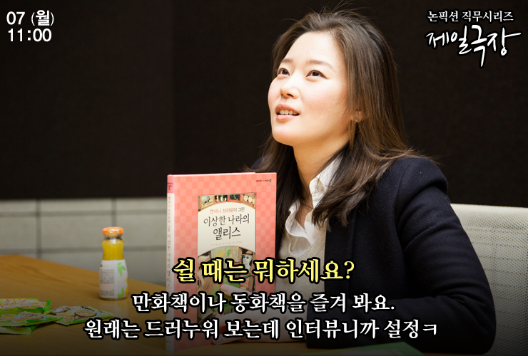 제 경우엔 회사 근처에서 하는 전시회도 보러 가고, 집에서 TV나 책을 보면서 최대한 아날로그 모드가 되요. 쉬는 시간만큼은 디지털과 멀어지는 것도 한 방법이라고 할까요?^^ 특히 만화책이나 동화책 보는 걸 좋아하는데요. 동화책은 짧은 스토리 안에 담긴 기승전결이나 크리에이티브가 어마어마해서 즐겨 봐요.