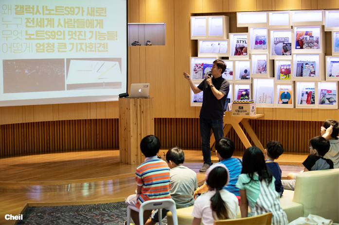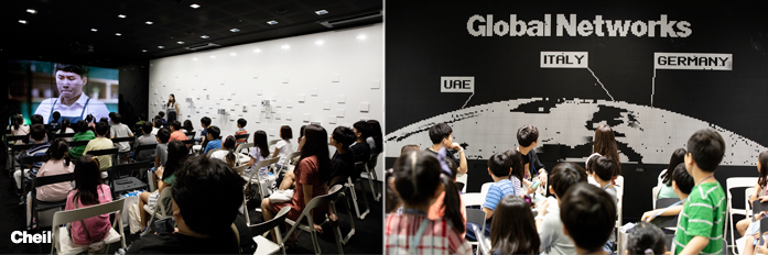 두 번째로 무대에 오른 김윤호 프로는 아이언맨, 코난 등 아이들의 눈높이에 맞춘 광고 커뮤니케이션 설명으로 눈길을 끌었습니다. 부모님이 만든 광고 캠페인을 감상한 제일 주니어들은 “엄마가 만든 광고가 TV에 나오니 멋있다”, “아빠가 만든 광고가 세상을 바꿀 수 있다는 사실이 놀랍다”며 자랑스러워했습니다.