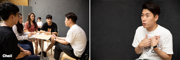 같은 시각, 대학생 제일 패밀리 4인은 정성수 프로와 함께 광고 멘토링 시간을 가졌습니다. 학업, 취업 등 다양한 진로 고민이 쏟아지는 가운데 정성수 프로는 비전공자로서 제일기획에 입사한 자신의 이력을 언급하며 “광고 관련 전공이 아니거나 관련 활동이 부족하더라도 자신만의 경력을 살려 광고 회사에 필요한 인재가 되려는 노력이 중요하다”고 조언했습니다.