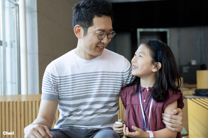 천유현 제일 패밀리는 “심(S/I/M)에서 보낸 시간이 제일 재미있었다”며 “나중에 커서 아빠처럼 제일기획에서 일하고 싶다”는 꿈을 전했습니다. 이 모습을 본 아빠 천석규 프로는 “아이가 흥미 없어 할 줄 알았는데 예상외로 너무 재미있게 즐겨줘서 뿌듯하다”고 밝혔습니다. 서로를 바라보며 웃는 부녀, 훈훈한 사랑이 느껴지죠?
