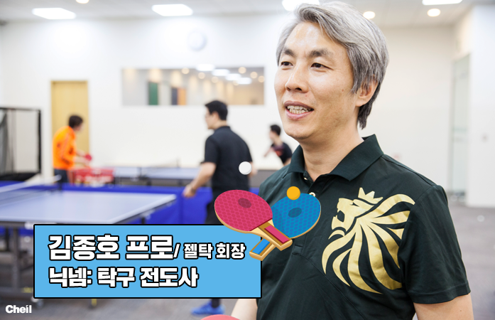 젤탁 회원들이 탁구에 빠지게 된 이유도 이 때문. 이들은 하나같이 “사내에서 쉽게 정기적으로 운동할 수 있는 게 젤탁의 매력”이라고 입을 모았는데요. 젤탁 회장을 맡고 있는 김종호 프로(비즈니스2부문 지원팀장)는 “회사의 배려가 있기에 가능한 일”이라고 운을 뗐습니다.