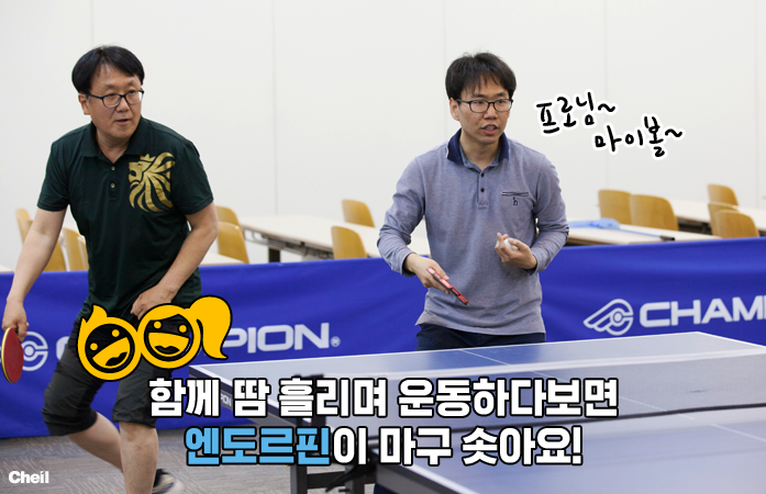 탁구를 치면 엔도르핀이 나오는 것 같다는 김광래 프로(경영혁신팀). “탁구 정말 재밌어요. 운동과 게임을 동시에 즐길 수 있으니 재밌을 수 밖에요. 젤탁을 통해 다른 부서 제일러도 만날 수 있고, 함께 운동 할 수 있어 더욱 즐겁습니다.”