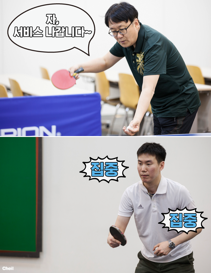 ▲(위)고대영 프로와 (아래)황순욱 프로는 “탁구는 사내에서 간편하게 칠 수 있고, 재밌게 운동할 수 있다”며 젤탁 활동을 적극 권했다