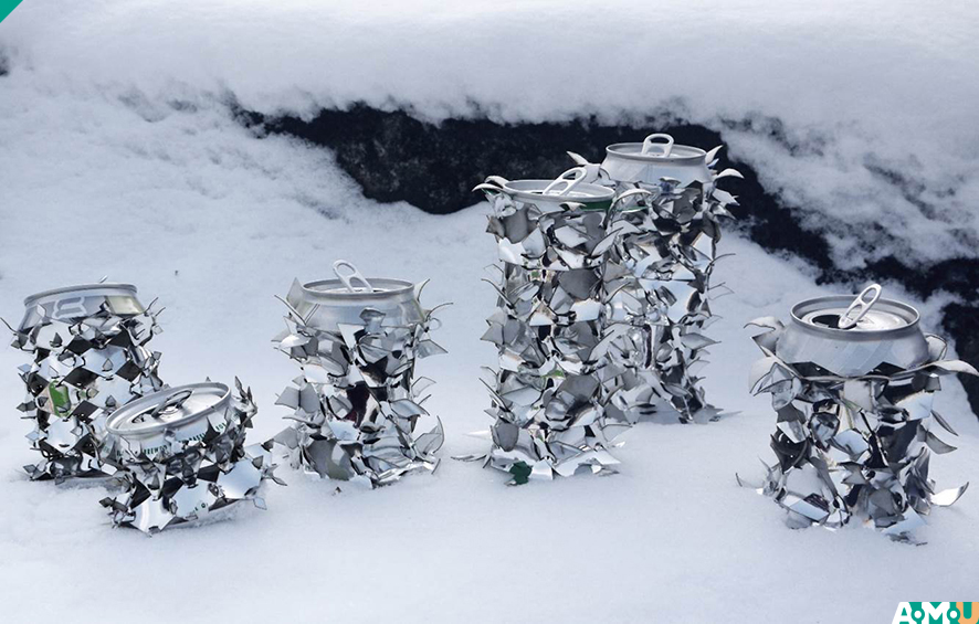 차가운 금속처럼 보이는 게 사실은 전부 다 패브릭이에요. 금속이 아니에요. 패브릭만 이용했어요. 사실 소재는 제가 전달하고 싶은 메시지에 맞게 선택하는 것이라서 크게 문제는 되지 않아요. 다만 ‘물건의 본연의 성질’을 표현하는 것에 관심이 많아요. 최근에는 금속성에 대한 것을 시각적으로 표현하고 싶었어요. 캔, 호미, 낫 모티브가 등장하는 것도 금속으로 이루어진 물체이고, 이 물체 안에 어떤 속성을 갖고 있을까 하는 거죠. 금은 차갑고, 잘 정제시키면 무언가를 베고 자르는 도구로 쓸 수 있고, 날카로운 속성을 갖고 있어요. 그러한 본질적인 속성을 패턴으로 만들어, 그 패턴을 이어 붙여서 낫 혹은 캔의 형상을 만들었어요. ‘나’를 배제하고, 우리 주변의 사물 또는 자연에 대한 본질적인 속성을 제가 해석한 이미지로 표현했습니다.