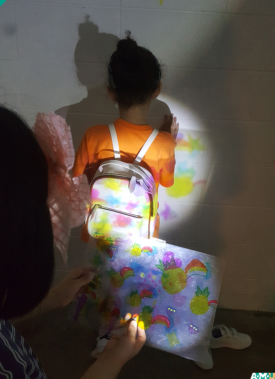 오늘 아이들은 따로 알려주지도 않았는데 자기들끼리 패턴을 서로 겹쳐서 빛을 비춰보던데요!(웃음)