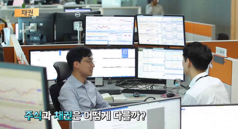 주식은 요즘 *HTS를 통해 개인적으로도 매수하고 매도할 수 있습니다. 채권은 주로 장외거래로 이루어져 있는데요. 메신저를 통해서 중개인과 매수/매도자들이 ‘사자’, ‘팔자’를 하며 거래를 하게 됩니다.
