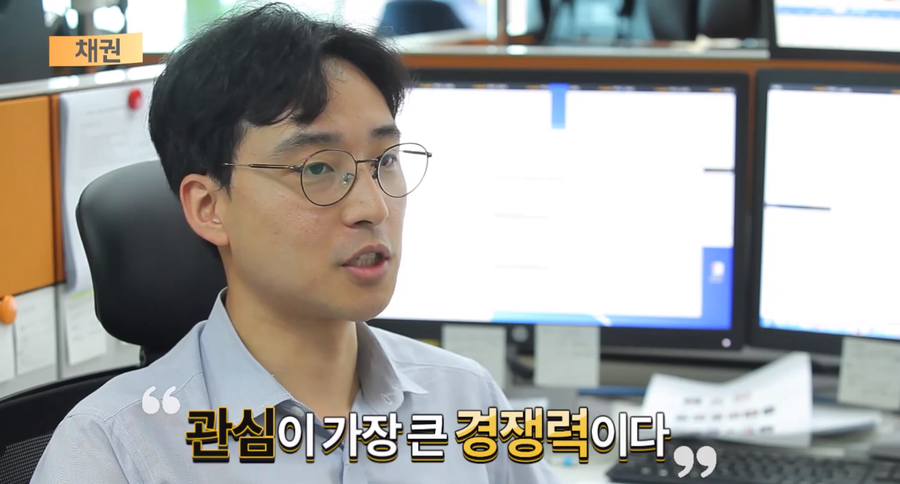그러다 보니 과장님은 무려 5개의 모니터를 사용하고 있는데요. 환율, 주식, 채권금리 등 수많은 정보를 실시간으로 취합하여 정보를 파악하는 것이 운용사 매니저의 능력이라고 할 수 있답니다. 또한, 운용사 매니저는 다양한 분야에 호기심을 가지고 있어야 한답니다. 관심이 가장 큰 경쟁력이라고 할 수 있어요.
