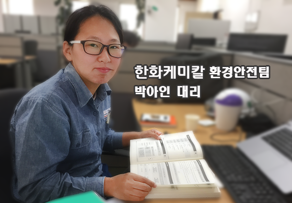 안녕하세요. 환경안전팀에서 근무하고 있는 박아인 대리입니다. 저는 여수공장 내에 온실가스 및 에너지 관련 업무를 담당하고 있으며 한화케미칼 여수공장에서 근무한 지 벌써 9년이 다 되어가네요.