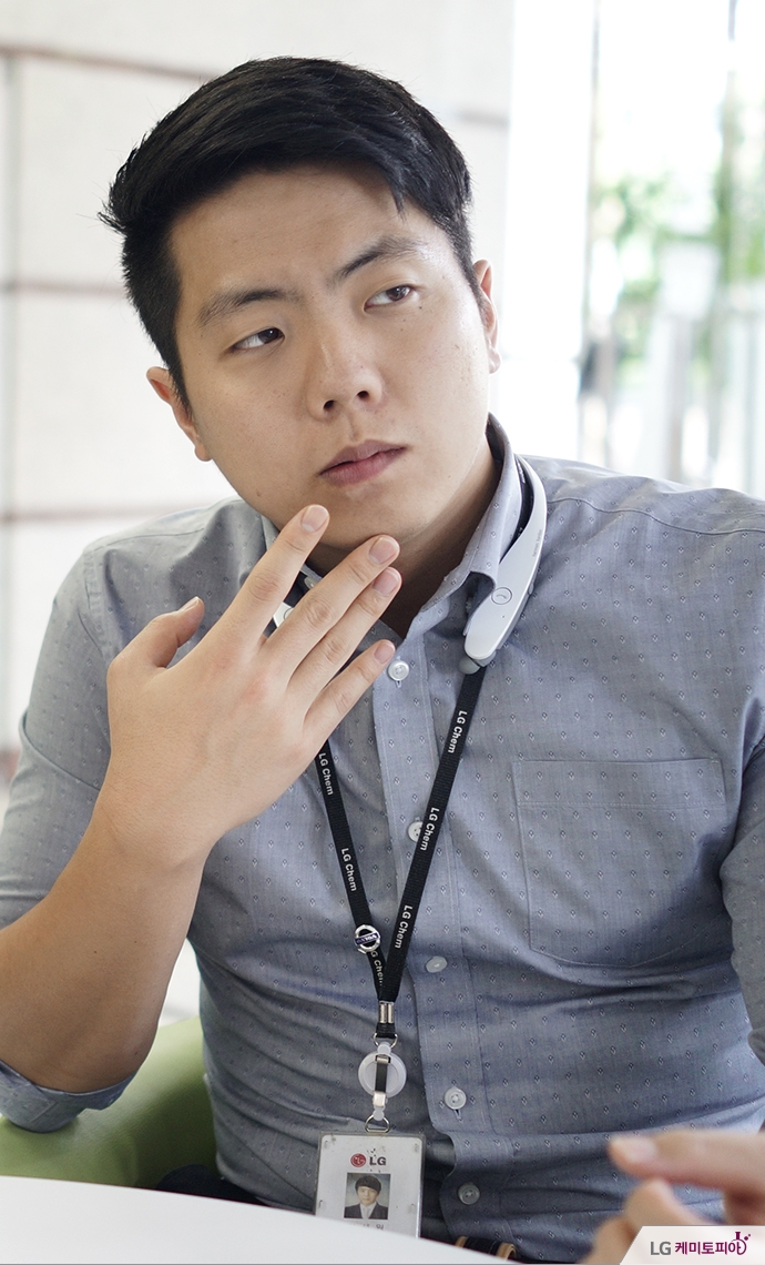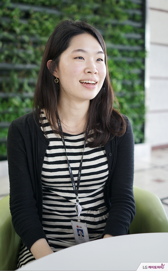 오현화 사원 저는 항상 ‘새로운 일’을 좋아했어요. 학생 때는 경영학과 심리학을 복수 전공했지만 새로운 일을 하고 싶었고, 취업을 생각하는 와중에 ‘자동차전지’라는 말을 처음 들었을 때 뭔가 새롭고 미래가 무궁무진하다는 느낌을 받았어요. 게다가 좀 더 알아보니 LG화학의 자동차전지가 세계에서도 최고 수준이라는 걸 알고 망설임 없이 지원했죠. 뭔가 다이나믹한 일들이 있을 것 같아서(웃음)