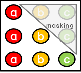 - 위의 예시를 보면, a를 예측할 때는 a이후에 있는 b,c에는 attention이 주어지지 않는 것입니다. 그리고 b를 예측할 때는 b이전에 있는 a만 attention이 주어질 수 있고 이후에 있는 c는 attention이 주어지지 않는 것이죠.
