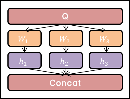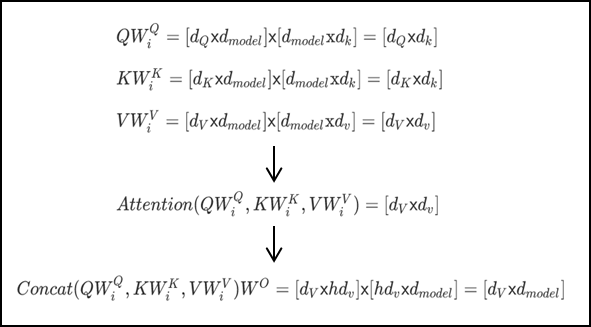 MultiHead(Q,K,V)=Concat(head1,...,headh)WO<math>MultiHead(Q,K,V)=Concat(head1,...,headh)WO</math>