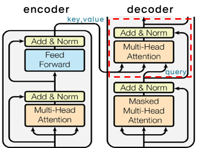 - encoder와 달리 encoder의 결과에 multi-head attention을 수행할 sub-layer를 추가합니다.