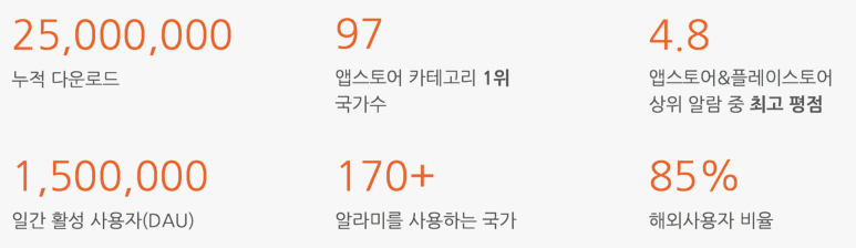 알라미가 풀려고 하는 문제가 사소하고 지엽적으로 보이지만, 이 문제에 집중한 덕분에 초기에 소수의 사용자가 사랑하는 제품을 만들 수 있었으며 더욱 많은 사람이 좋아하는 앱으로 발전해 나갈 수 있었다. 이러한 경험을 하면서 YC의 샘 알트만이 말한 “소수의 사용자가 사랑하는 것을 많은 사람이 사랑하도록 확장하는 일이, 많은 사람이 좋아하는 것을 많은 사람이 사랑하게 만드는 것보다 훨씬 쉽습니다” 에 대해 격하게 공감하게 되었다. 지금까지 많은 분이 알라미를 좋아해 주셔서 투자 없이도 잘 성장할 수 있었으며 97개국 앱스토어 카테고리 1위, 2500만 다운로드 등 다양한 성과를 내고 있다.