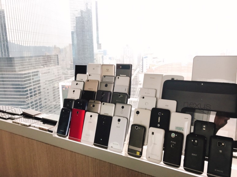 사무실에 있는 테스트폰 사진 (70여 종의 다양한 제조사 테스트폰이 있다)