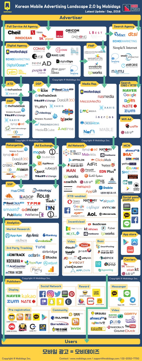 대한민국 모바일 광고 생태계 지도 (출처: 모비데이즈), 해외까지 합치면 더욱 많아진다.