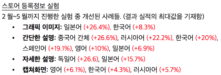 스토어 등록정보 A/B 테스팅 리스트 중 다운로드 전환율이 개선된 사례들