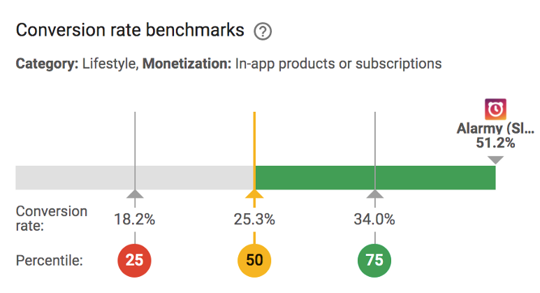 위 그림에서 비슷한 앱들의 획득률을 비교한 벤치마킹 결과를 볼 수 있다. 75 percentile이 34% 인데, 이를 보면 알라미는 나름 괜찮은 획득률(51.2%)을 유지하고 있다. 물론 CPI 등의 마케팅을 진행하여 획득률을 높일 수는 있겠지만, 알라미는 현재 어떠한 마케팅도 하고 있지 않다.