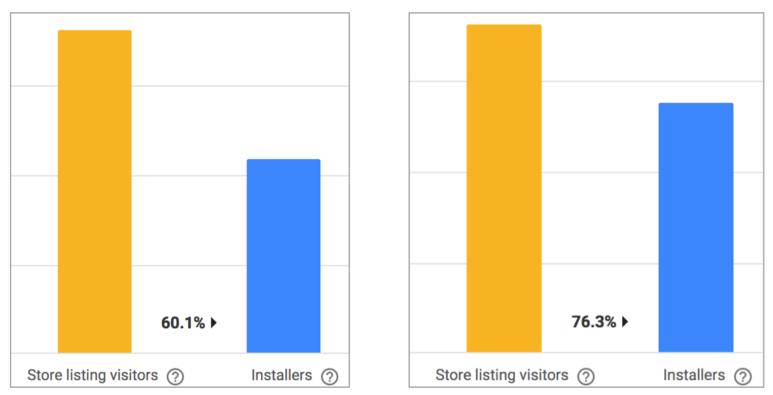 위처럼 여러 가설을 많은 국가에서 A/B 테스팅 해온 덕분에 알라미의 스토어 획득률은 50% 정도를 유지하고 있다. 이 말은 스토어 등록정보를 보는 사람 2명 중 1명은 꼭 알라미를 받는다는 뜻이다 .