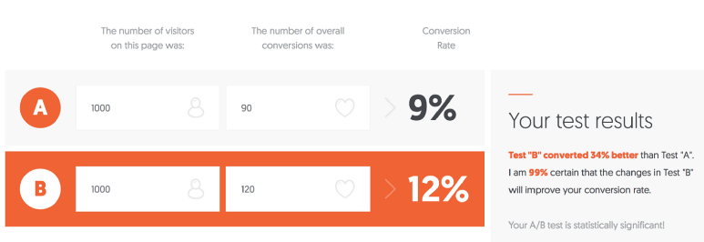당연한 이야기지만 A/B 테스팅을 하려면 충분한 모수가 모여야 한다. 모수가 적으면 제대로된 결정을 내리기 힘들기 때문에, 아래와 같은 통계적 유의미도 계산기를 사용해 결과를 보는것도 도움이 된다.