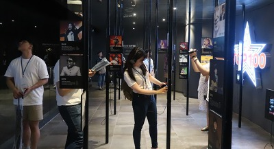 1층에는 '라이브 홀로 콘서트’를 관람할 수 있는 장소와 VR 체험기기가 있어요. 2층에는 ‘음악을 다시 듣다’는 주제로 한국 대중가요의 역사를 느낄 수 있는 공간이 꾸며져 있었습니다. 3층에서는 ‘라이브 360 3D’ 극장과 ‘나는 스타다’라는 주제의 영상이 상영되고 있었는데요. 방문객들은 영상 속에 들어가 K-pop 스타와 함께 사진을 찍고, 춤도 출 수 있답니다.