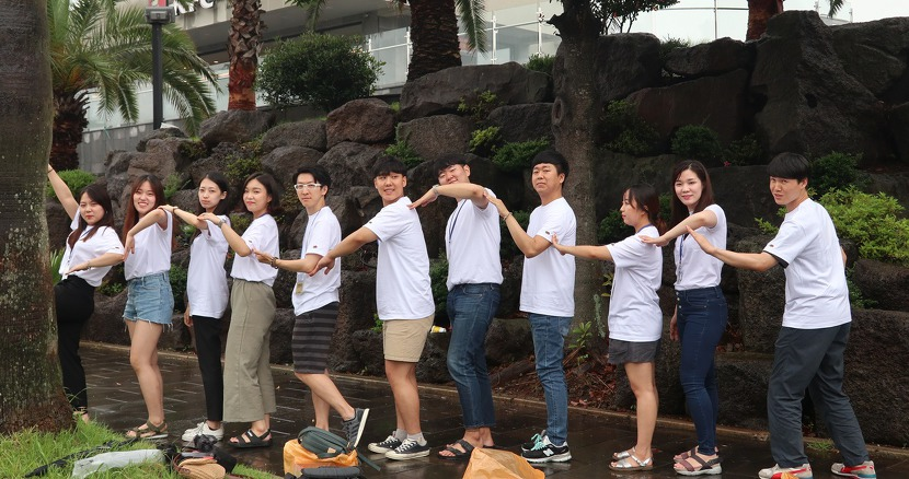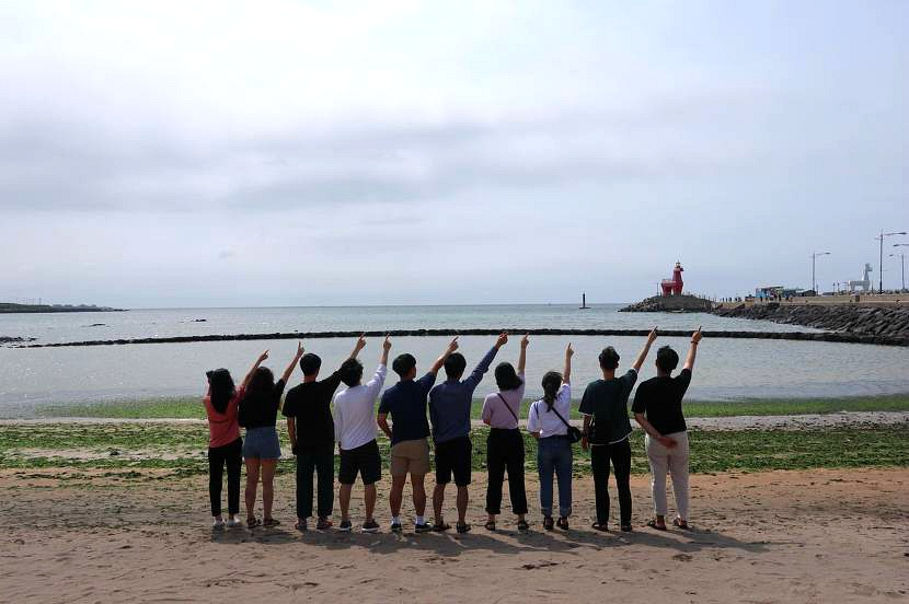 워크숍 팀원들이 단합해 제주도를 배경으로 재미난 포즈를 취하며 단체사진을 찍었습니다. 어느 팀 사진이 제일 멋진가요? ^^