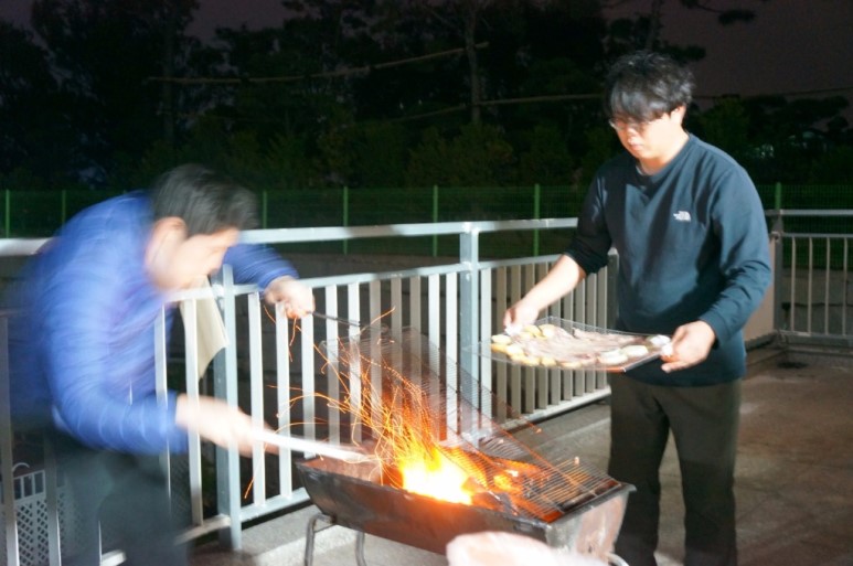각오한마디 : "고기는 즐거운 마음으로 여유있게 구워야 해요!"