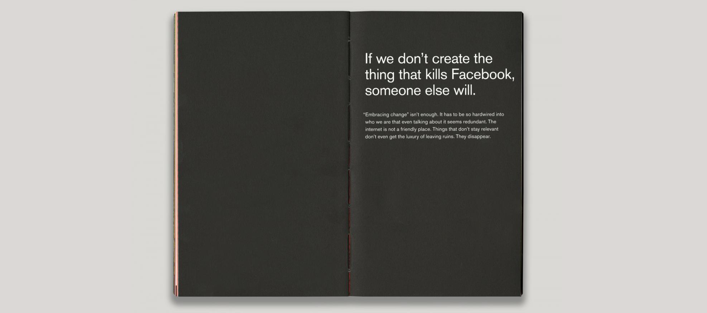 페이스북의 직원 가이드북을 보면, 새로운 직원들은 그들의 팀이 계속 새로운 생각을 하게끔 자극 할 것을 권장하고 있다.
