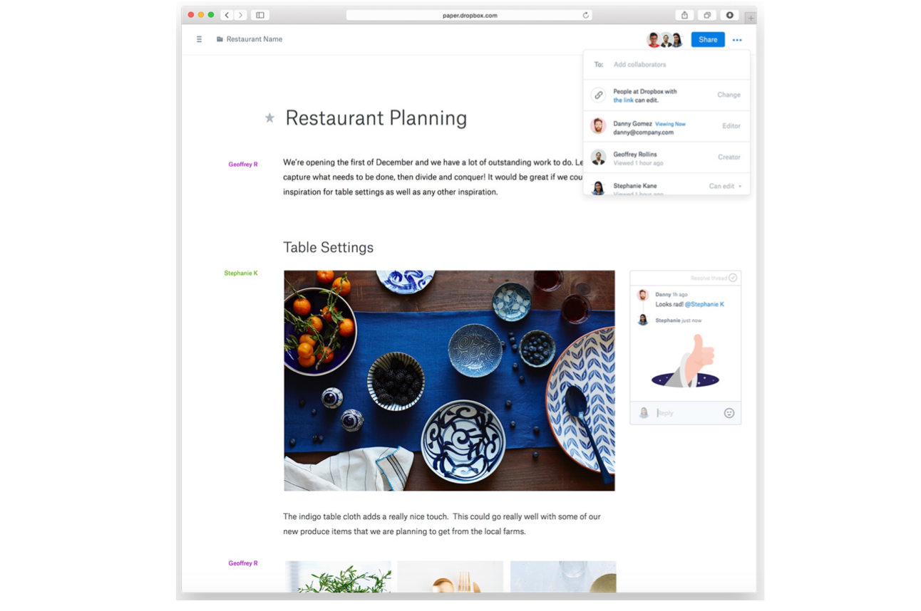 드롭박스 페이퍼는 단순히 문서와 파일을 저장하는 데 드롭박스를 쓰는 것이 아니라, 이제 문서와 파일을 만드는 데에도 드롭박스를 쓸 수 있게 만들어 주었다. 드롭박스 페이퍼는 사람들이 더 많이 서비스를 이용하게 만들었는데, 이는 파일 공유를 넘어 사람들간의 협업을 더 쉽게 해준다는 추가적인 옵션을 제공해줬기 때문이다.