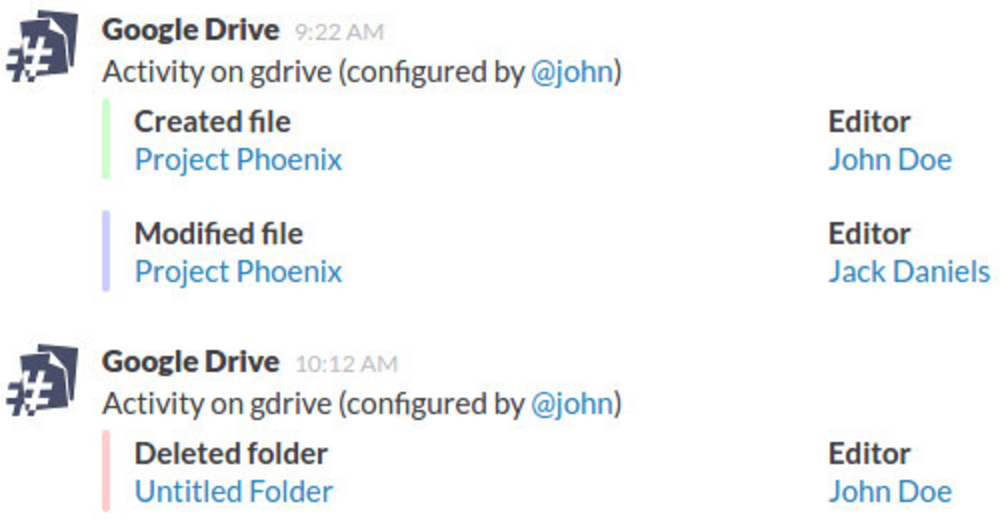 Google Docs와의 통합으로 Slack 앱을 나가지 않고도 구글 문서 활동들을 볼 수 있게 되었다.