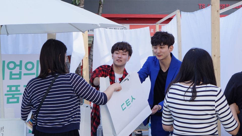 최근 신촌로 채용 행사에서 선보인 더팀스 쇼.핑.백.