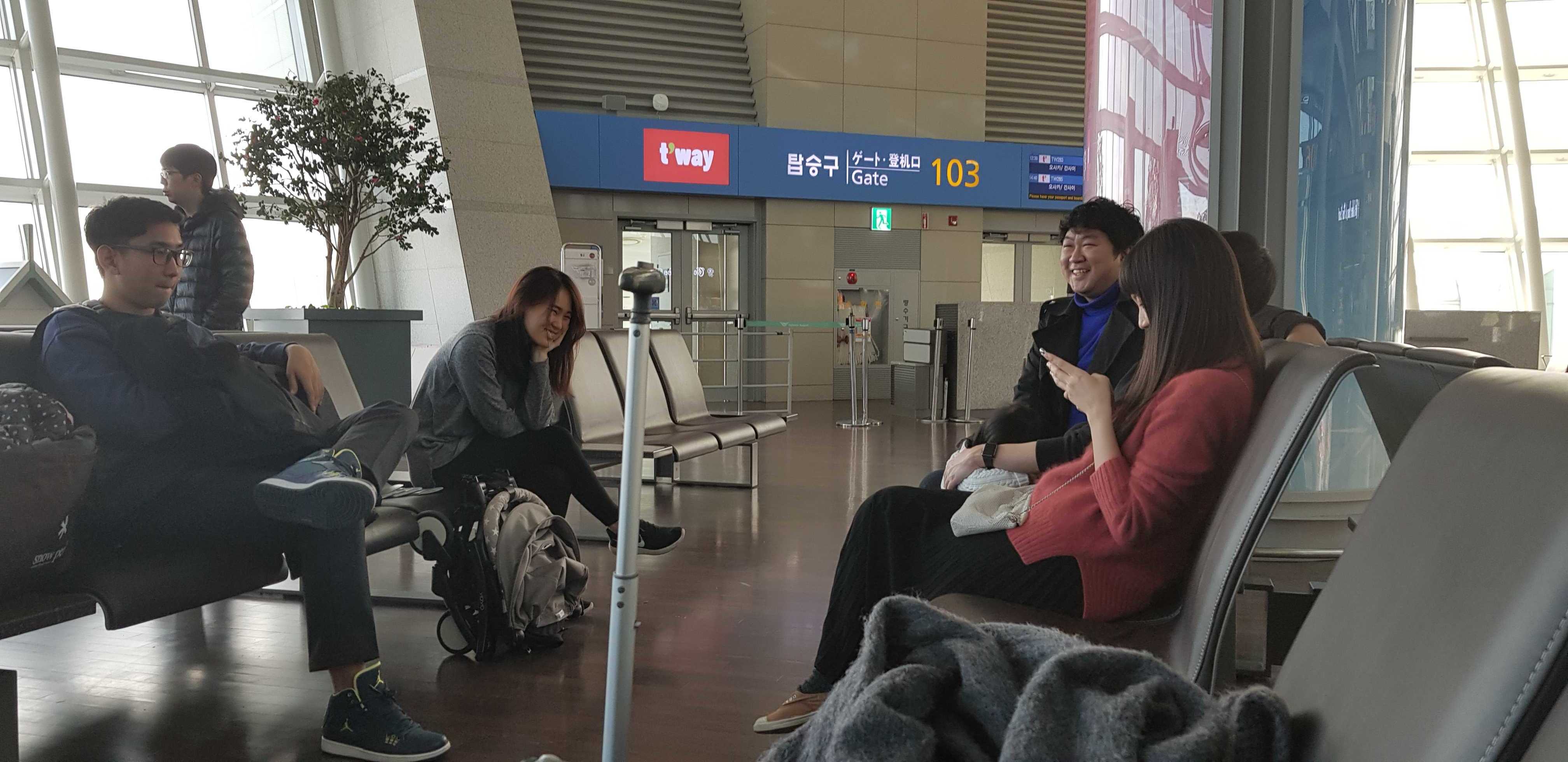 월요일 아침 7시에 인천공항에 모인 일행들(매우 피곤하지만 신나보임)