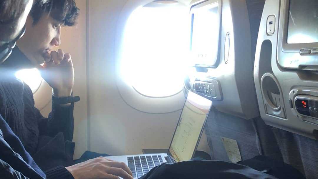 비행기가 매우 협소하여 가는 길이 매우 지루했다. 워크샵 내용을 미리 점검해보는 중. 연출 아닙니다.