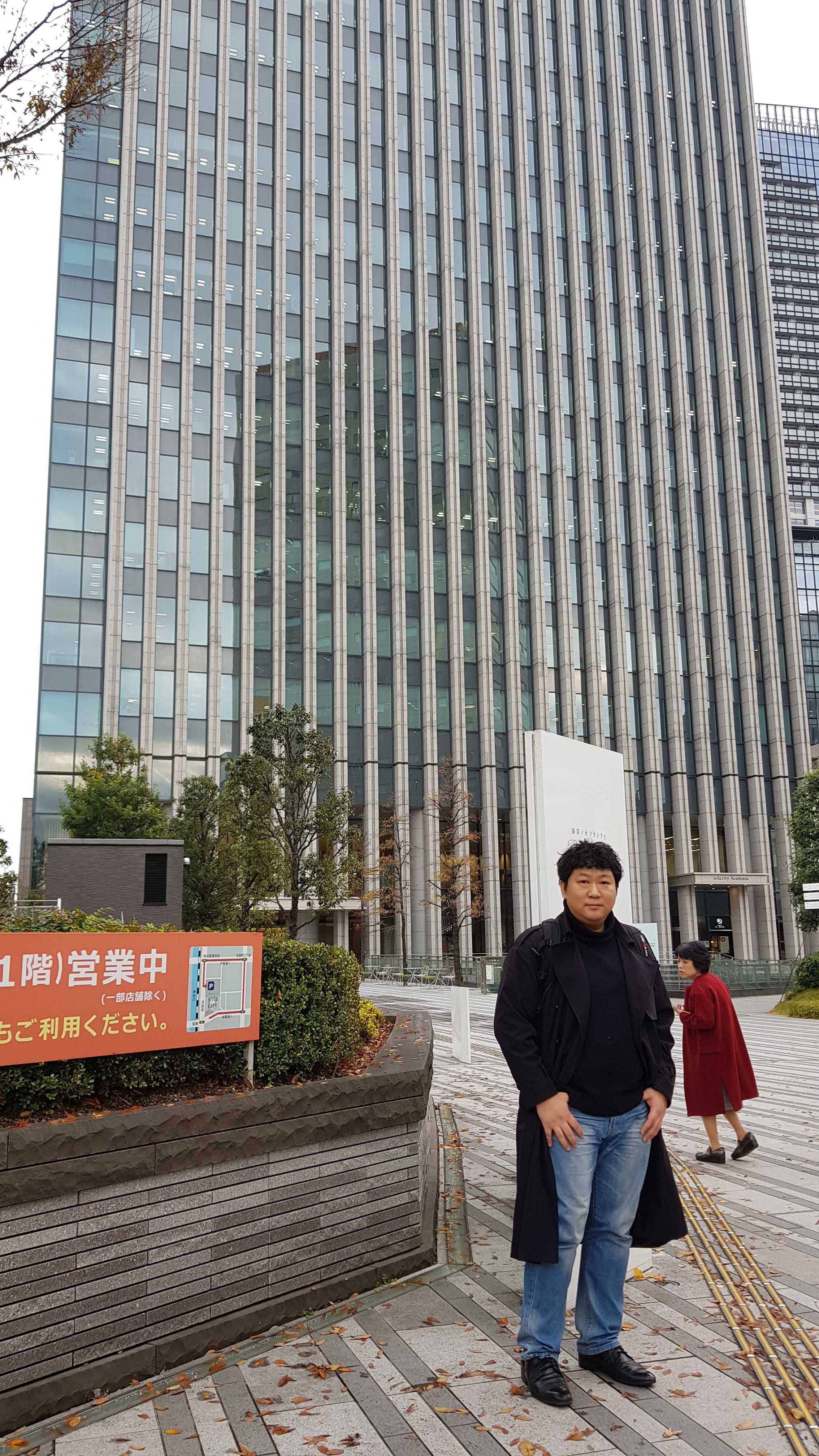 미즈호 증권사 앞에서 상현님의 영웅본색 컨셉 한컷(얼마전까지 미즈호 증권사 다니시다가 더팀스가 스타트업 첫 도전)