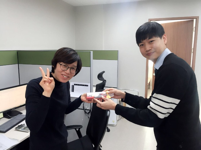▲CS센터 풀님에게 발렌타인 기념 초콜릿을 전달하는 진호경님