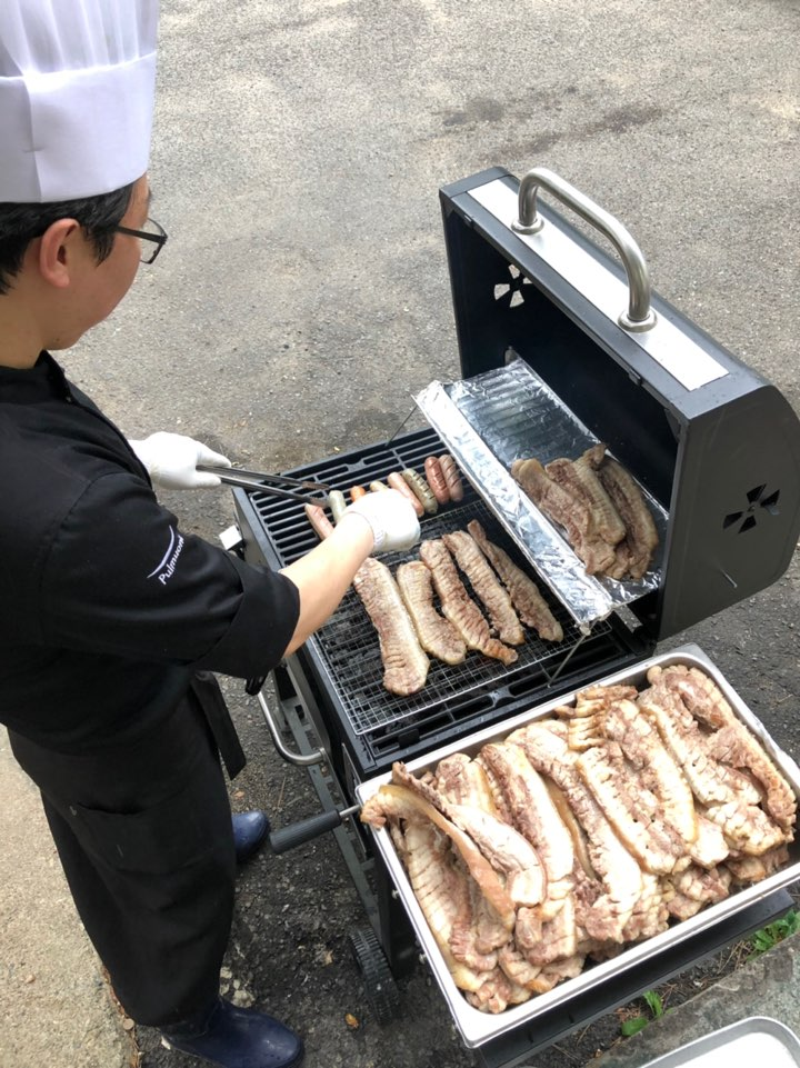 완제품 중에는 ‘허브딜 훈제연어스테이크’, ‘리얼직화그릴함박’, ‘우리쌀바삭 깐쇼새우’ 등을 자주사용했고, 소스류도 다양하게 쓰고 있어요. 또, 선수들이 만두를 매우 좋아하거든요. 만두 제품 중에는 ‘생가득 납작지짐만두’, ‘쫀득이복만두’가 인기가 많아요. 그 외에도, ‘찬마루 사골우거지국’ 같은 국류 제품이나, ‘치즈랑소시지랑 더블도그’, ‘대만식지파이’ 같은 간식류 제품들도 자주 내고 있어요.