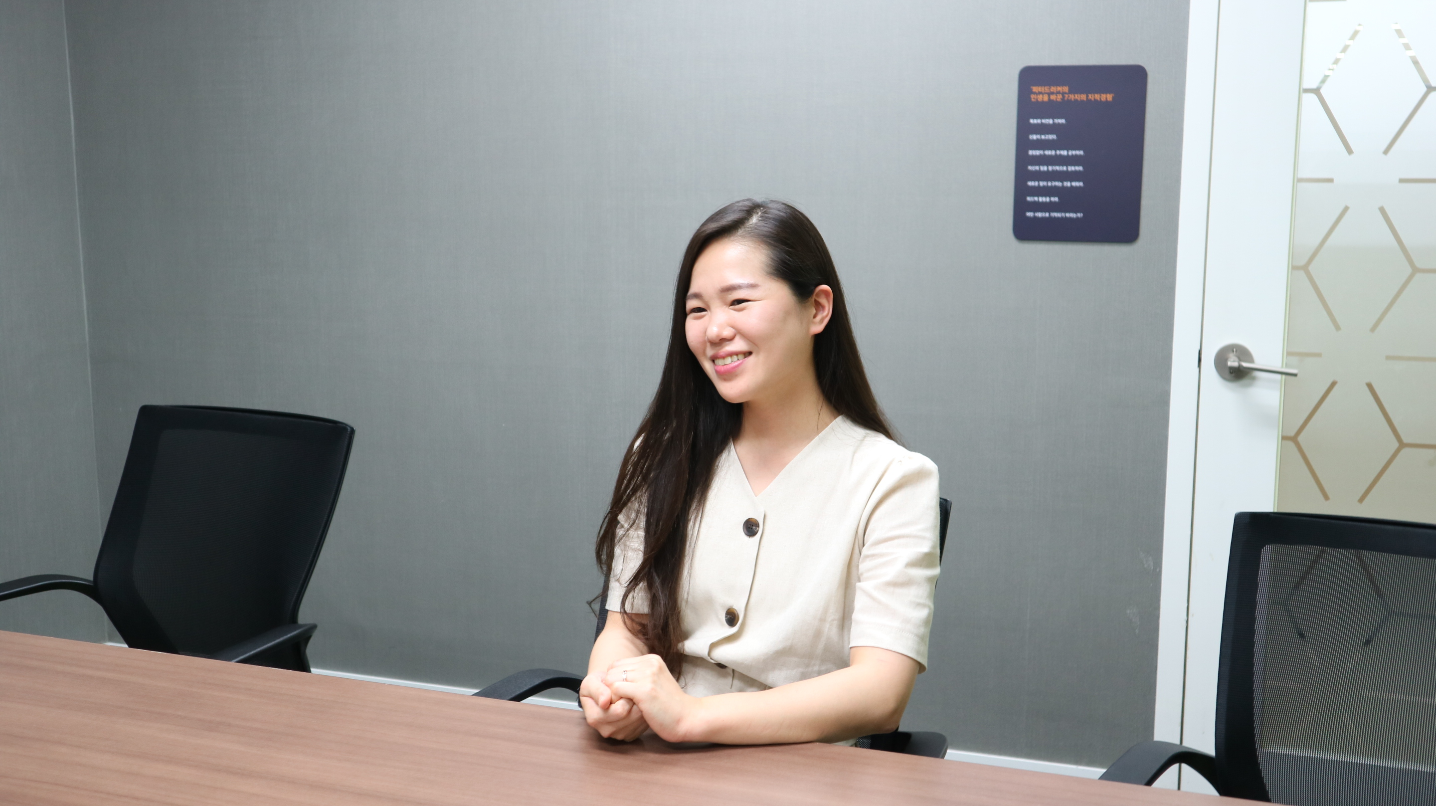 ▲ 인터뷰 질문에 답하며 환하게 웃고 있는 김지윤 매니저