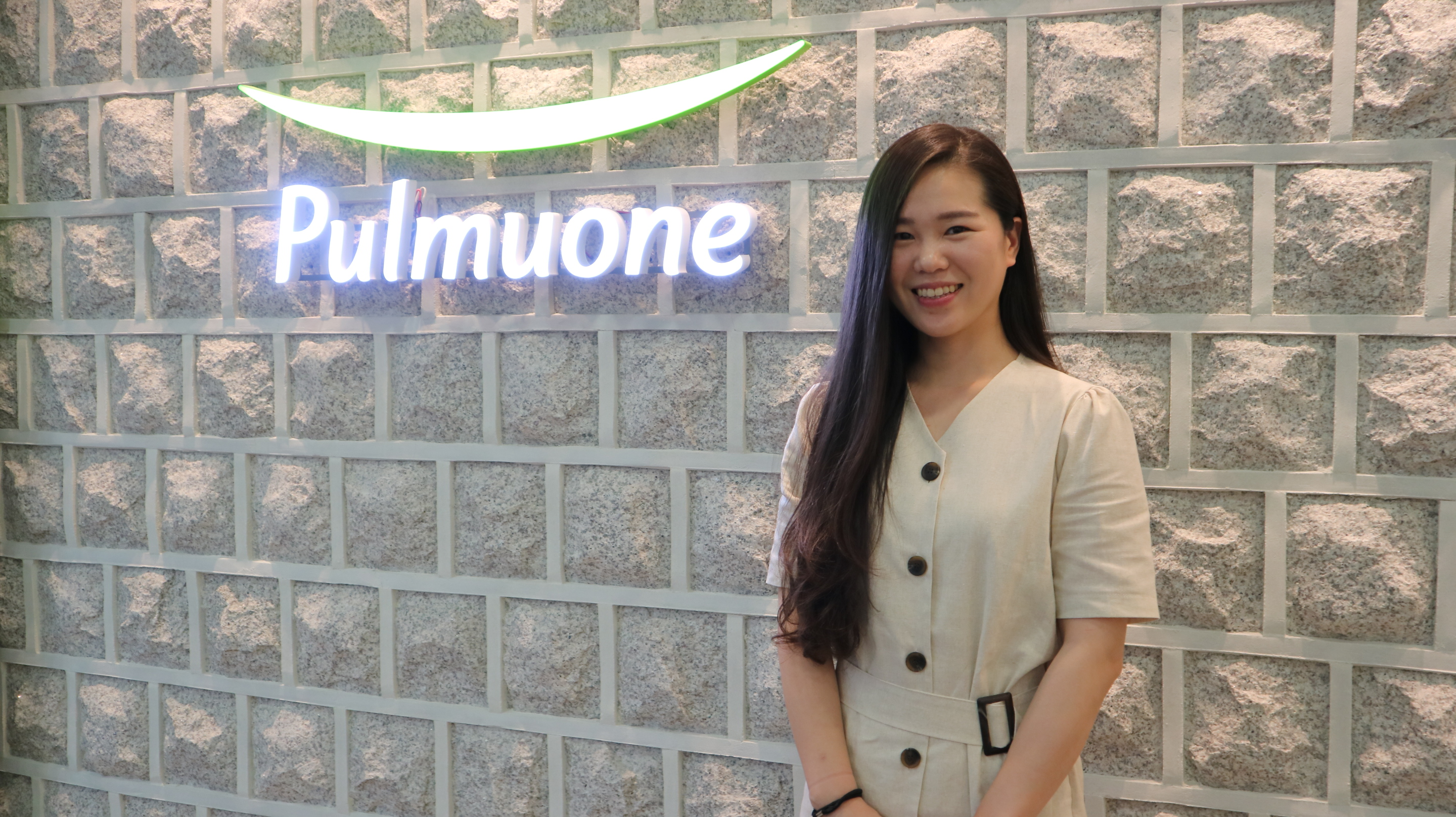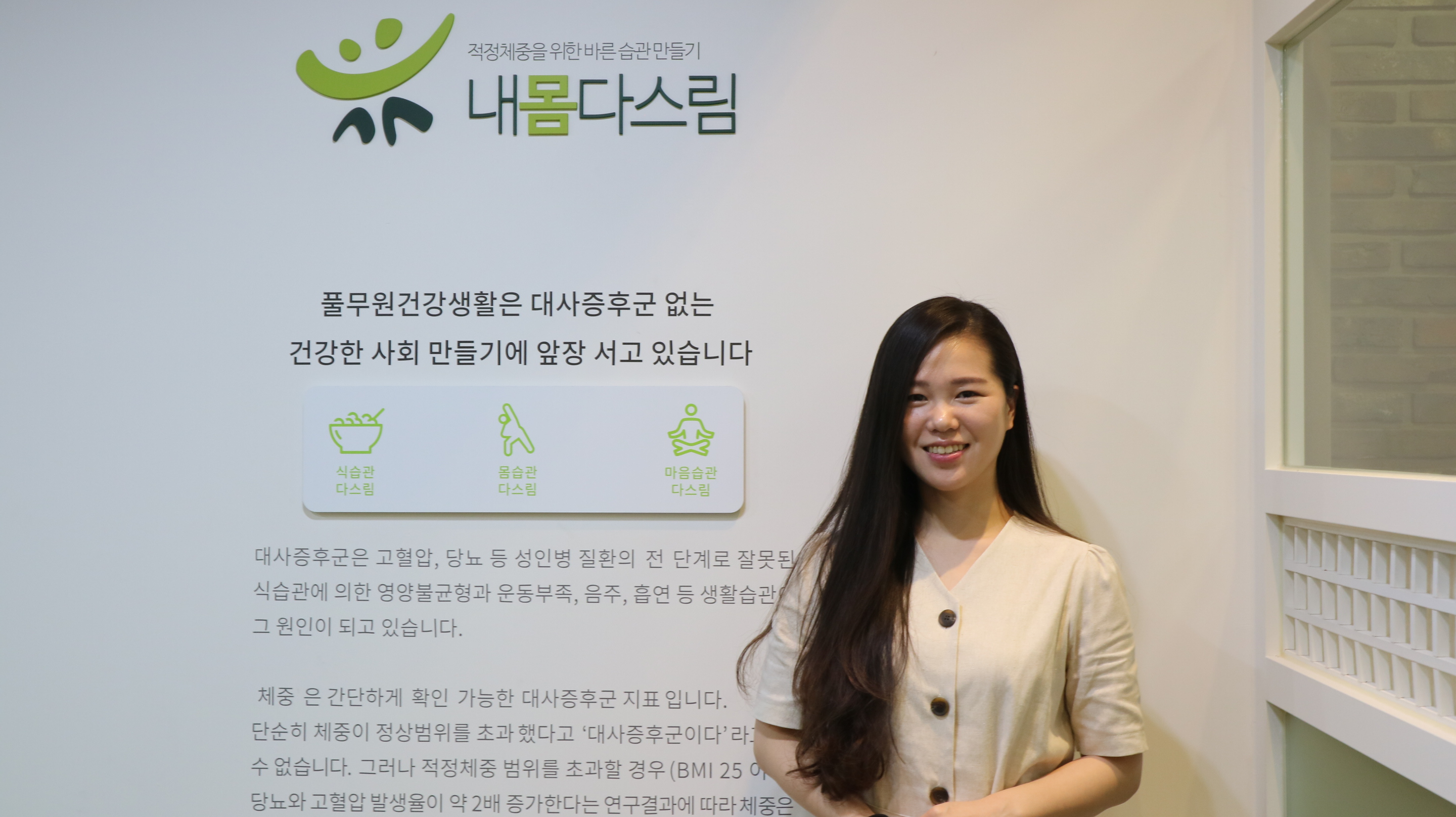 ▲ 풀무원 수서 본사 2층에서 밝게 웃으며 포즈를 취하고 있는 김지윤 매니저