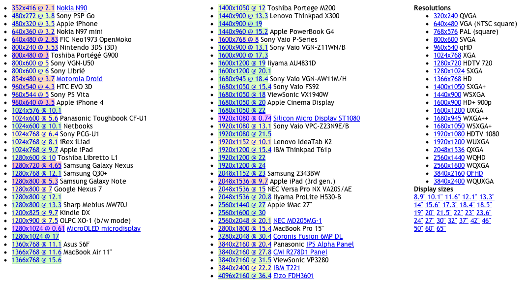 하지만 모든 모니터의 도트피치는 다 다릅니다. 위의 링크에서 볼 수 있듯이 모니터의 ppi는 종류별로 매우 상이하죠. 위에서 예로 든 12 pt의 글씨는 웹 브라우져에서 16 px로 렌더링 되긴 하지만, 각 모니터에서 표시되는 16 px의 실제 크기는 모니터의 도트피치에 따라 다릅니다.