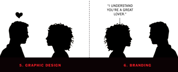 위 이미지는 마케팅, PR, 광고, 디자인과 브랜딩의 차이점에 대해 설명하고 있습니다. 마케팅, PR, 광고는 한 사람(=기업/브랜드)이 ‘나는 어떠어떠한 사람이예요!’ 라고 상대방(=대중)에게 말을 합니다. 하지만 그래픽 디자인과 브랜딩은 좀 다르죠?